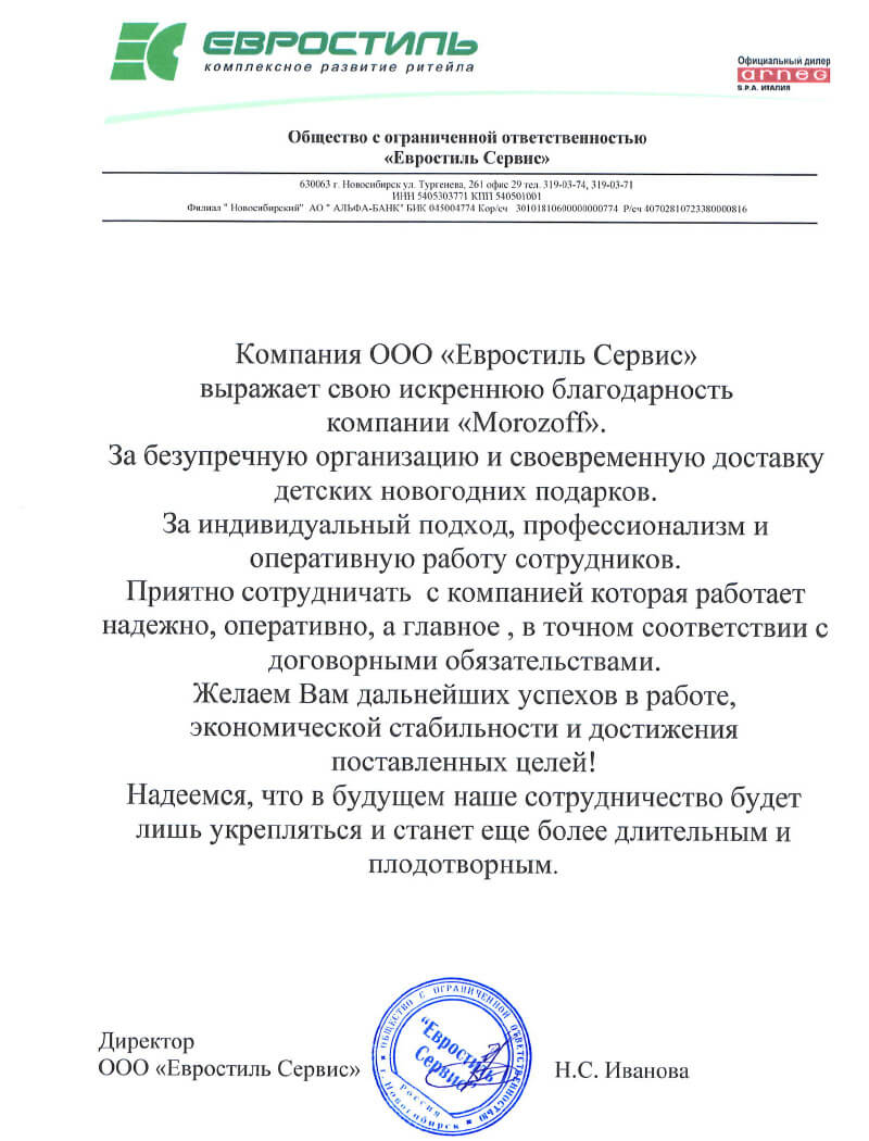 Морозофф - один из крупнейших поставщиков новогодних и корпоративных подарков в СНГ. Мы сами разрабатываем и производим подарочную упаковку, а также имеем прямые контракты со всеми кондитерскими фабриками, что гарантирует качество и оптимальные цены. Доставляем подарки по всей Беларуси!